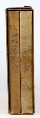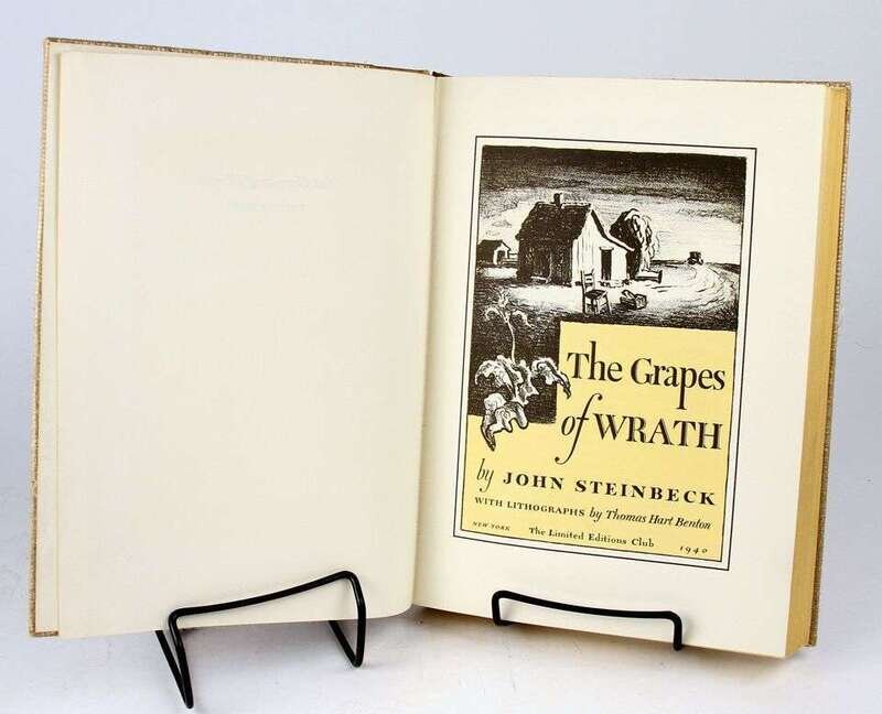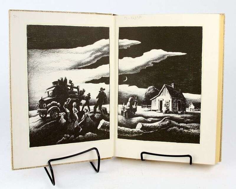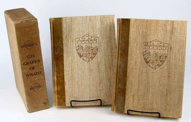 (Limited Editions Club of New York.) Steinbeck, John. The Grapes of Wrath. New York, 1940. Illus with lithos by Thomas Hart Benton. #819/1146, signed by Benton. 4to, orig 1/4 rawhide & decorated grass cloth; rawhide slightly scuffed & a little mottled, some light edge wear, slipcase (scuffed, stressed at joints). Complete with 67 two-tone zink plate lithos.