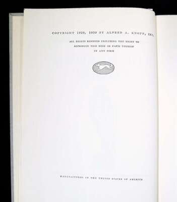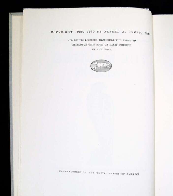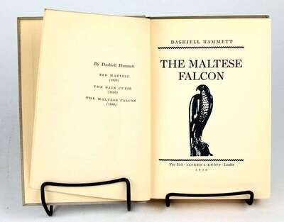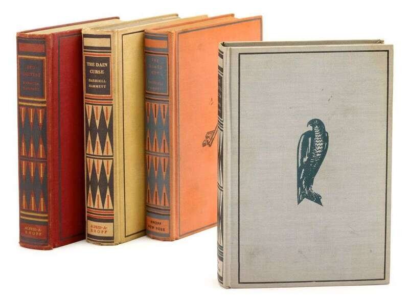 Hammett, Dashiell. The Maltese Falcon. New York; London: Alfred A. Knopf, 1930. 1st ed, 1st ptg. 12mo, orig green, black & white stamped pictorial slate gray cloth, top edge stained blue-green, other edges untrimmed; occasional minor dust smudging. Without d/j, but tight, attractive copy.