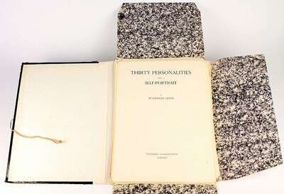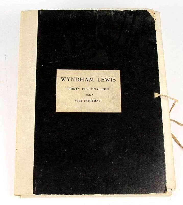 Lewis, Wyndham. Thirty Personalities and a Self-Portrait. London: Desmond Harmsworth, 1932. #132/200, signed by Lewis. Folio, orig white linen-backed bds, paper cover label, ties; corners rubbed, label moderately dusty, other minor edge wear. Title, text illus, 31 plates, lettered tissue guards, loose as issued. Scattered minor dust smudging to plate margins. Complete & attractive.