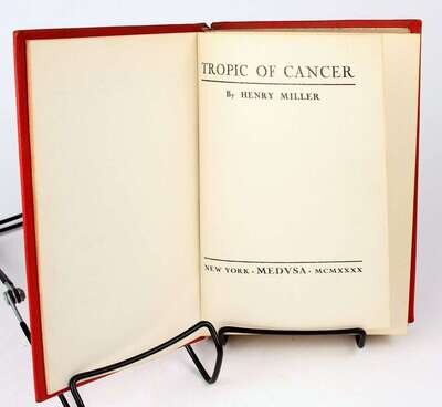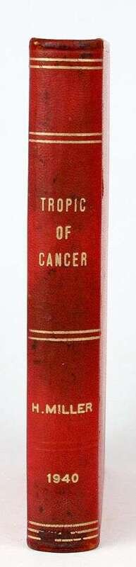 Miller, Henry. Tropic of Cancer. New York: Medusa, 1940. 1st (pirated) American ed. 12mo, contemp red morocco-backed red pebbled cloth. Minor stain on terminal leaf.