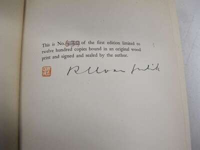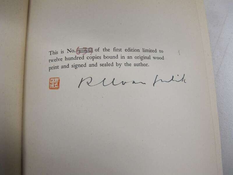 Van Gulik, R.H., trans. Dee Goong An. Three Murder Cases Solved by Judge Dee. An Old Chinese Detective Novel ... [Tokyo: Toppan Printing Company for the Author, 1949.] 1st ed, #639/1200, signed by van Gulik. 8vo, orig color pictorial bds; corners a little bumped, spine ends scuffed, very slightly cocked. Lacking d/j. 9 plates incl frontis. Very slightly toned. [Collection of Arthur W. Hummil Sr. & Jr.?] Considered the first complete English language translation of Chinese detective stories.