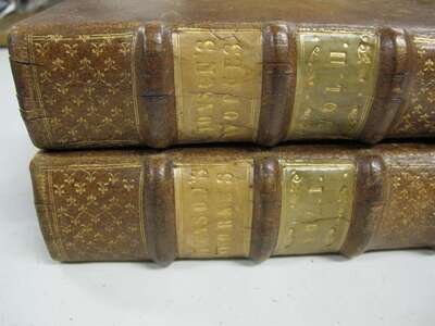 Jonson, Benjamin. The Works. London: Richard Bishop [for] Andrew Crooke, 1640-1641. 3 vols in 2. Folio, 18th-century full calf, gilt floral spine compartments, morocco spine labels, raised bands. With frontis portrait, engraved title. Complete.