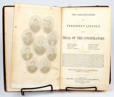 (Lincoln, Abraham.) Pitman, Benn, compiler. The Assassination of President Lincoln and the Trial of the Conspirators. New York: Moore, Wilstack & Baldwin, 1865. 1st ed. 8vo, orig cloth, gilt-lettered spine; some edge wear, parts of spine starting to pull away. Frontis, map. Scattered light foxing.