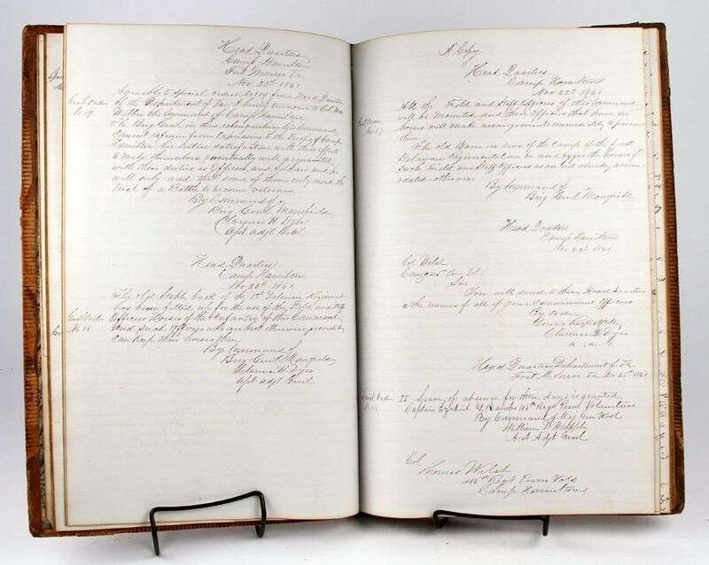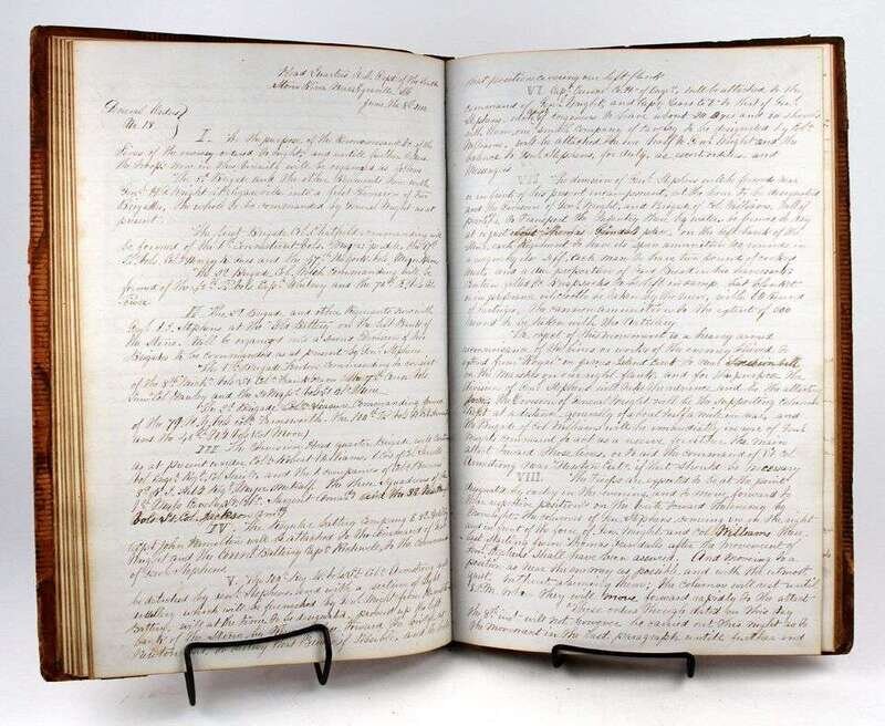 (American Civil War.) Manuscript Copy Book. 45th Pennsylvania Volunteer Infantry. Regimental orders, Oct 19, 1861 - Mar 15, 1863. Folio, orig sheep; occasionally scuffed. 262pp of ink entries. Internally clean.