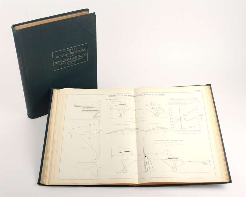(Aviation). Eiffel, G[ustave]. Nouvelles Recherches sur la resisitance de l'air et l'aviation faites au laboratoire d'auteuil. Paris: H. Dunod et E. Pinat, 1914. 1st ed. Lg 4to, original gilt-lettered green cloth; minor wear, with photogravure frontis & 39 fold plates. Internally clean. Untrimmed.