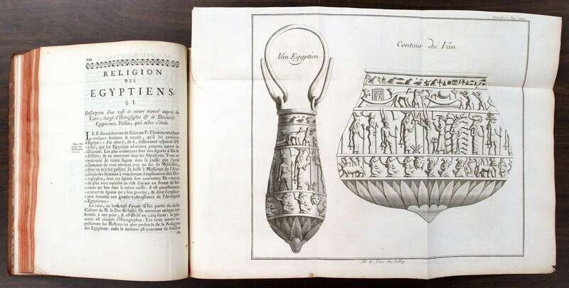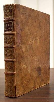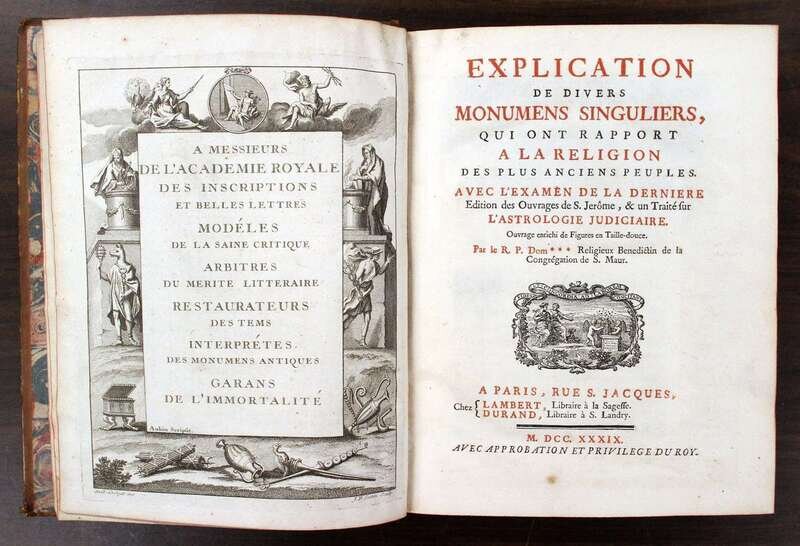 Martin, Jacques Benedictine. Explication de divers monumens singuliers. Paris: L. Durand, 1739. 4to, contemp full mottled calf, gilt floral spine compartments, red morocco spine label, red stained edges; occasionally scuffed. Frontis + 12 fold plates. Internally generally clean & crisp. 18th-century engraved bookplate on paste-down.