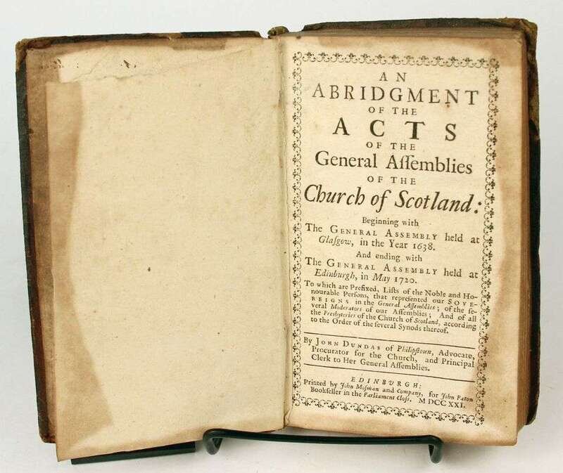 British Religious 17th- & 18th-Century Imprints: Liturgia seu liber precum communium ... una cum psalterio ... London: E. jones for A. Swall & T. Childe, 1696. 12mo, contemp blind-tooled & stamped black calf; scuffed, corners bumped. Some internal spotting Lacking endpapers. Wing ***. * Dunas, John. An Abridgement of the Acts of the General Assemblies of the Church of Scotland. Edinburgh: John Mosman for John Paton, 1721. Sm 8vo, contemp sheep, morocco spine label; worn. Some darkening & dust smudging to edges of title-page.