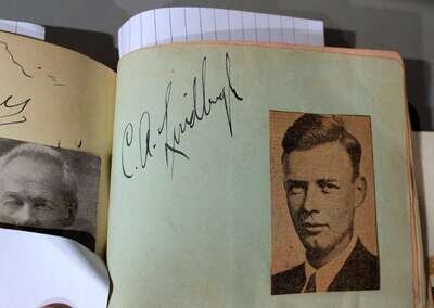 Autograph Material - 2 Autograph Albums & Loose Material - Ca. 1920s & 1930s: Notables include: Ade, George. Album leaf signed. * Amundsen, Roland. Album leaf signed. * Bird, Richard E. Album leaf signed. * Coolidge, Calvin. White House card signed. * Dawes, Charles C. Card signed. * Davis, Dwight. Album leaf signed. * Earhart, Amerlia. Album leaf signed. * Gillette, William. Album leaf signed. * Leonard, benny. Album leaf signed & inscr. * Lindberg, C[harles] A. Album leaf signed. * Hoover, Herbert. Card signed. * Nansen, Fridtjof. Album leaf signed. * Root, Elihu. Album leaf signed. * Wilkins, Geo Hubert. Album leaf signed. * Wister, Owen. TLs. Philadelphia, Nov 19, 1929. On impulse to write westerns. * Et al.