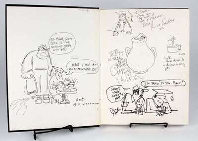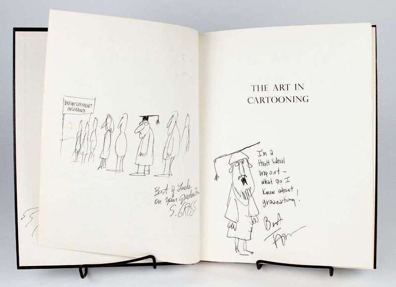 (Illustration & Cartoon Art.) Fisher, Edwin et al., ed. The Art in Cartooning: Seventy-Five Years of American Magazine Cartoons. New York, [1975]. 1st ptg. 4to, orig bds. Illus throughout. Light wear. Front endpaper inscribed with orig pen & ink drawings by George Booth, Dana Frandon, S. Gross, Gahan Wilson.