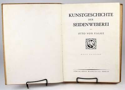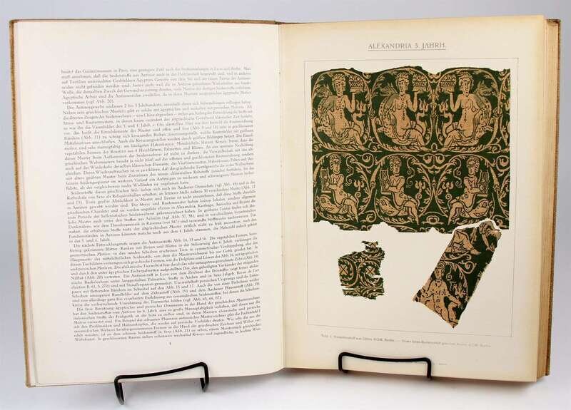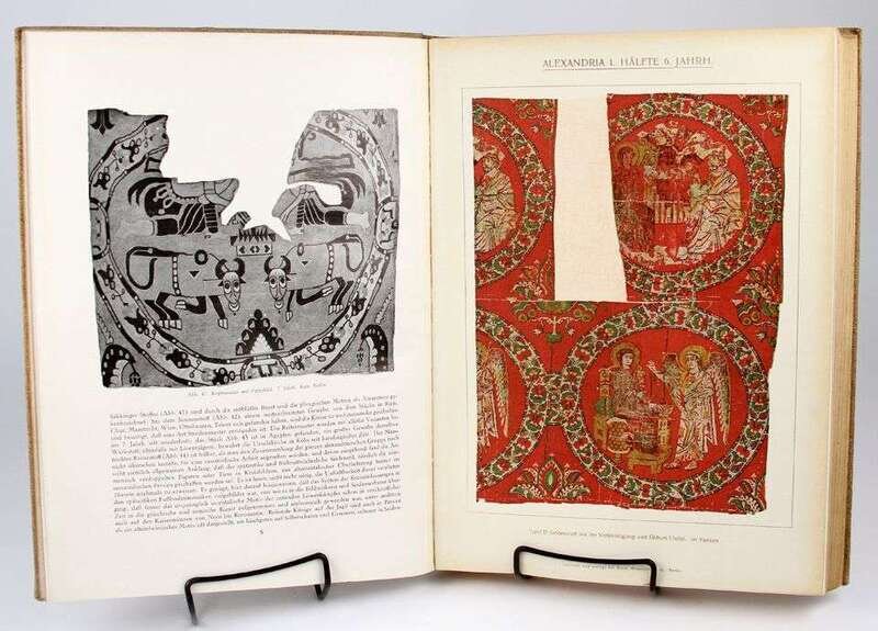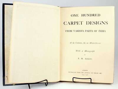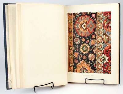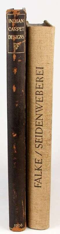 Textiles: Andrews, F.H. One Hundred Carpet Designs from Various Parts of India. London: Extracted from the Journal of Indian Art, 1905-1906. Folio, orig 1/2 morocco & blue cloth, gilt, t.e.g.; moderately scuffed, joints rubbed. With 100 plates (incl 18 color plates). Internally generally clean. * Falke, Otto von. Kunstgeschichte der Seidenweberei. Berlin, 1921. Sm folio, orig buckram; moderate wear. With 10 color plates, 526 b/w illus on numerous plates.