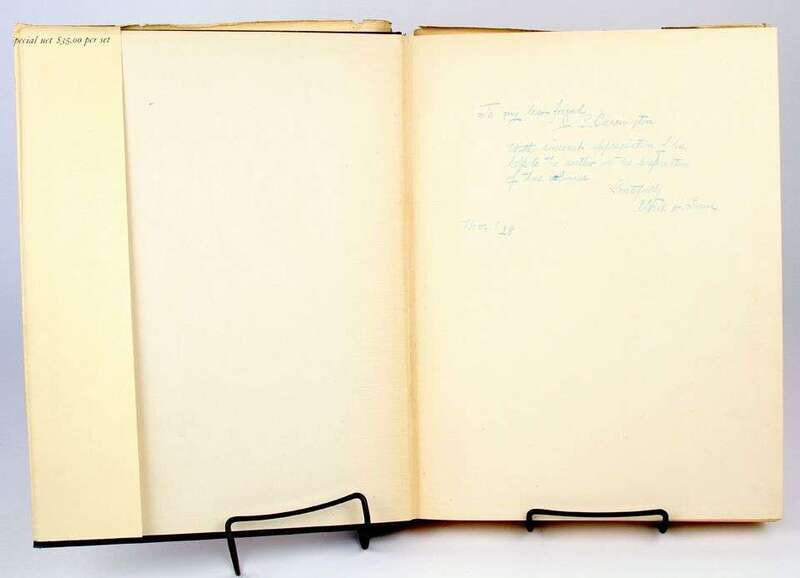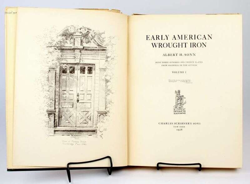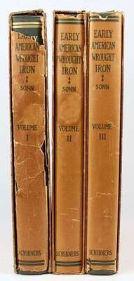 Sonn, Albert H. Early American Wrought Iron. New York: Scribner's, 1928. Sm folio, orig green cloth; minor wear, d/j (some chipping & paper loss to spine panels), orig slipcases worn at joints. With 320 plates. Presentation set, inscr to J.B. Carrington, dated "Nov 19, [19]28" & signed on front free endpaper recto of vol 1. J.B. Carrington is the first name given in the author's printed acknowledgements on pp vii, vol 1.