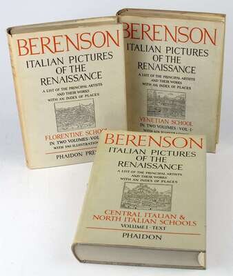 Berenson, Bernard. Italian Pictures of the Renaissance. Garden City; London: Phaidon, [1957-1968]. 4to, orig cloth, d/j. Plates. Light shelf wear.