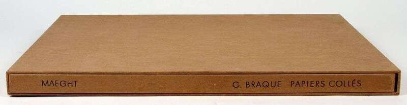 (Braque, Georges.) Derriere le Miroir. [N° 138]: Georges Braque: Papiers colles 1912-1914. Paris: Maeght, 1963. #118/150. Folio, orig color pictorial wrappers. With 5 lithos by Braque (2 double-page), incl pictorial wrappers. Fine, in orig brown cloth case with paper label, chemise.
