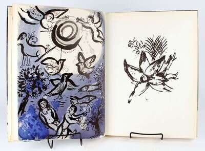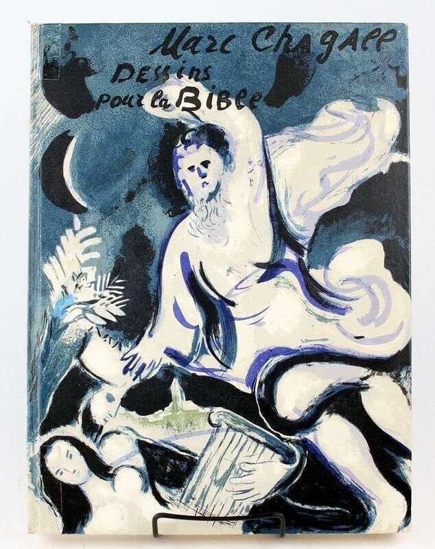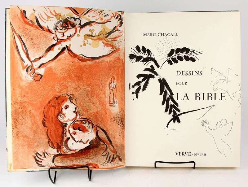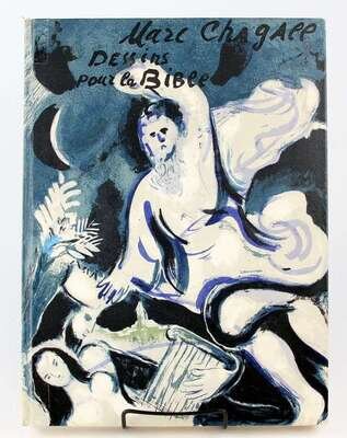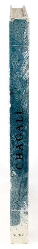 Chagall, Marc. Dessins pour la Bible. [Paris], 1960. Verve Nos 37/38. Folio, orig color pictorial bds by Chagall; spine ends & corners scuffed, transparent tape reinforcement at head (1 1/2 in) & foot (2 1/2 in). With 24 color lithos by Chagall, 96 b/w full-page illus. Old tape residue at edges of endpapers. Internally generally clean.
