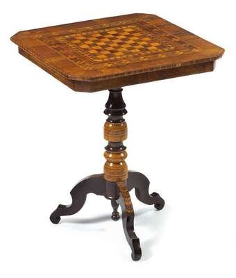 Mahogany and satinwood parquetry inlaid games table 19th century