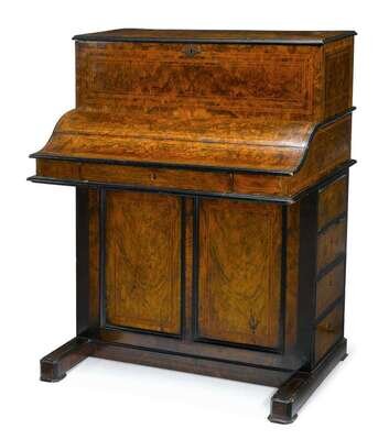 Victorian music box walnut Davenport secretary late 19th century