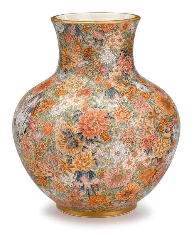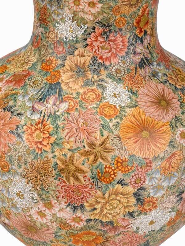 An impressive Ryozan satsuma 'mille fleurs' vase meiji period, kyoto porcelain company