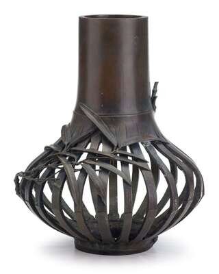 Japanese reticulated bronze vase meiji period