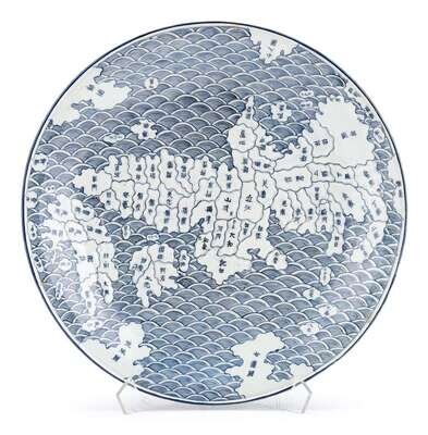Japanese Arita blue and white porcelain 'map' charger edo period