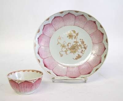 Chinese export porcelain famille rose Lotus plate and saucer 18th century