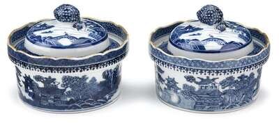 Fine pair of Chinese export blue and white porcelain covered butter dishes 18th century