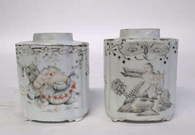 Two Chinese export tea caddies decorated en grisaille late 18th century