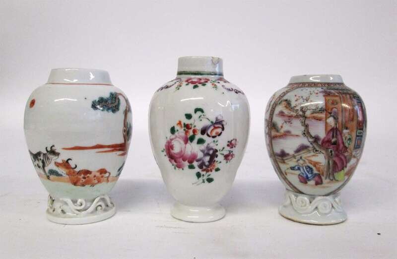 Group of three Chinese export polychrome painted tea caddies late 19th century