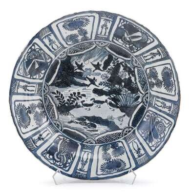 Large Chinese kraak ware blue and white charger ming dynasty