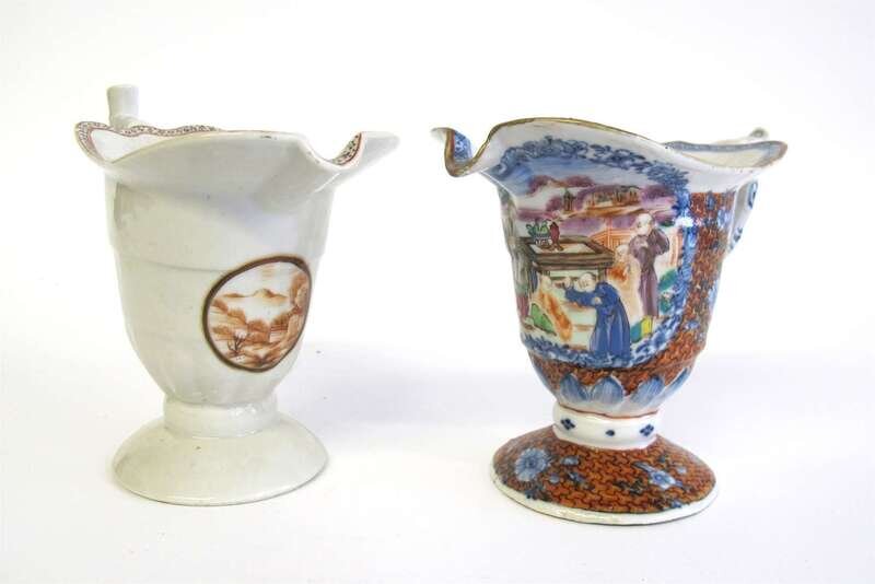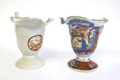 Two Chinese Export porcelain helmet creamers 18th century
