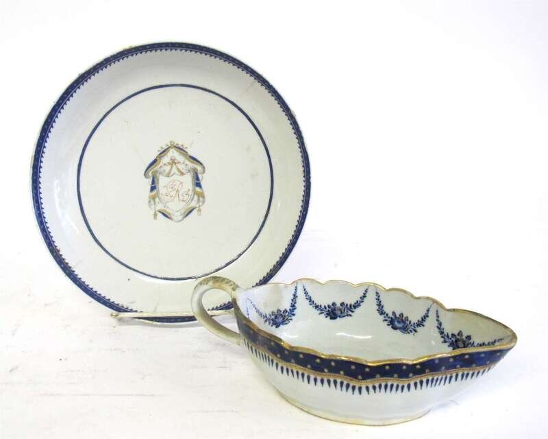 Chinese export porcelain armorial dish and sauce boat 18th century