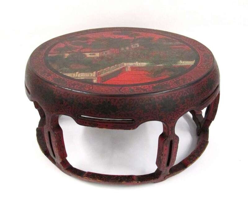 Chinese red laquer drum table 19th/20th century