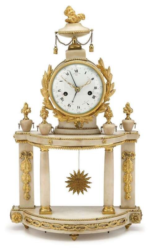 Louis XVI style white marble and gilt bronze mantle clock french, 19th century