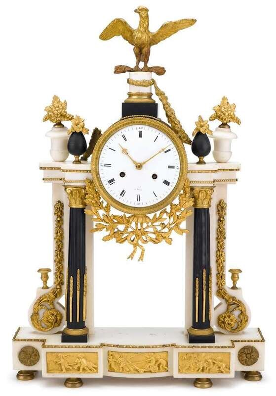 Louis XVI style marble and gilt bronze mantle clock french, 19th century