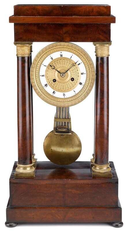 French Empire mahogany and gilt bronze mounted portico clock circa 1815