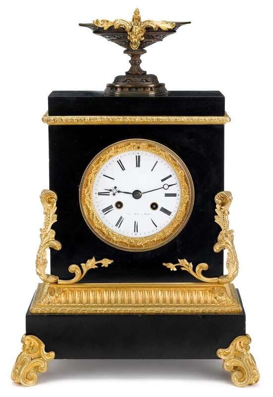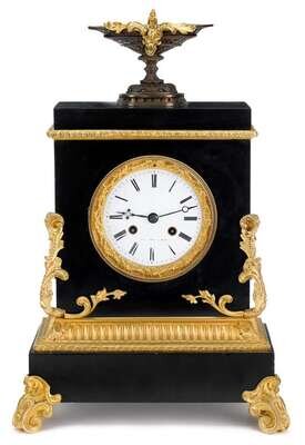 Napoleon III black marble and gilt bronze mantle clock raingo frères, late 19th century