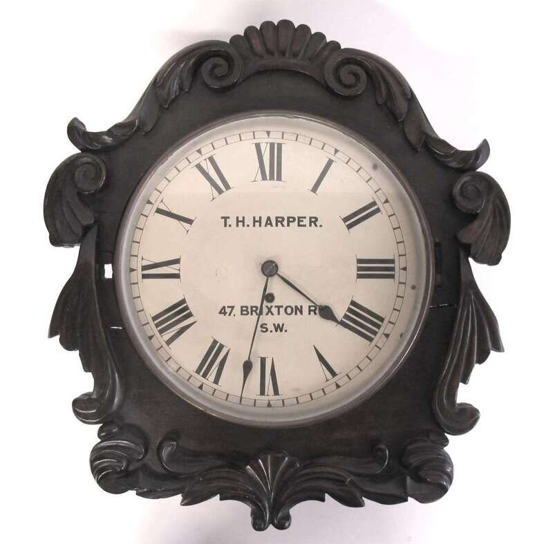 English late Victorian mahogany wall clock, T.H. Harper, Brixton Rd. circa 1900