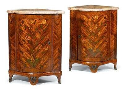 Pair of Louis XV gilt-bronze mounted floral marquetry encoignures mid 18th century