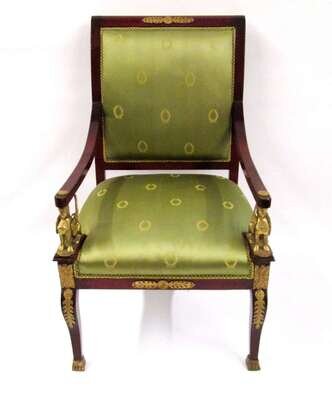 French Empire style gilt metal mounted mahogany fauteuil 20th century