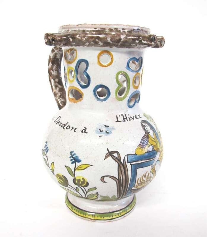 Nevers French faience puzzle jug 18th century