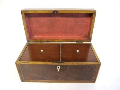 George III mahogany and satinwood inlaid tea caddy 18th century