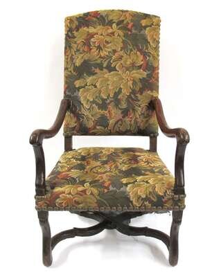 Louis XIV tapestry upholstered walnut armchair circa 1700 with restorations