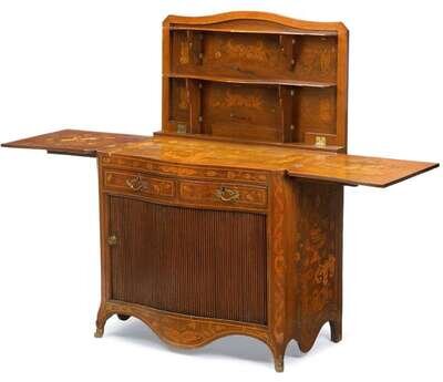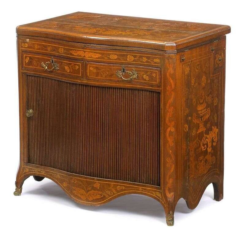 Dutch floral marquetry inlaid tambour server 19th century