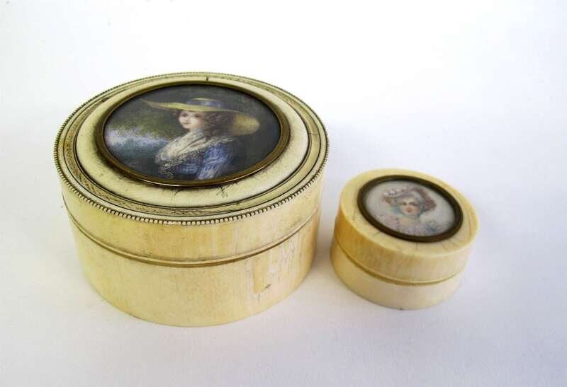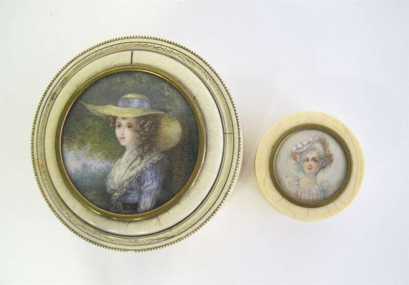 Two French ivory boxes with inset hand-painted portrait miniatures 19th century