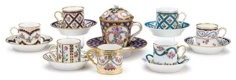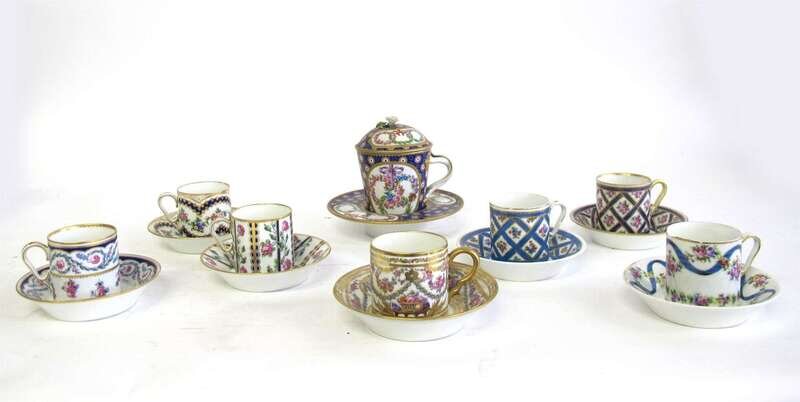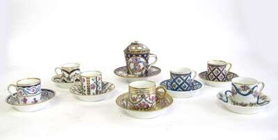 Group of Sevres porcelain coffee cans and chocolate pot 19th century