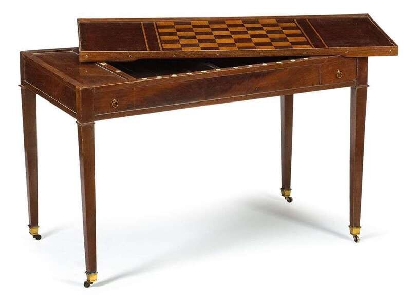 Louis XVI style bone and parquetry inlaid mahogany tric-trac table late 18th century and later