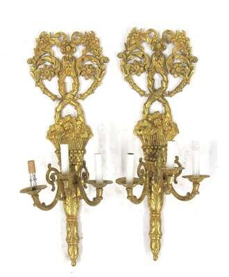 Pair of Louis XV style gilt brass sconces 19th/20th century