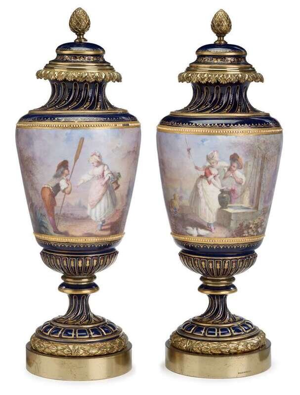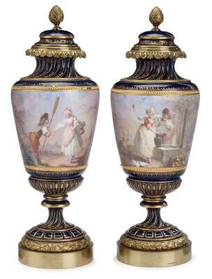 Pair of Sevres gilt bronze mounted jeweled porcelain vases late 19th century