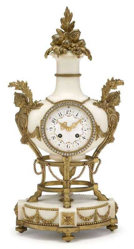 Louis XVI style white marble, gilt bronze and paste mantle clock 19th century, retailed by j.e. caldwell philadelphia