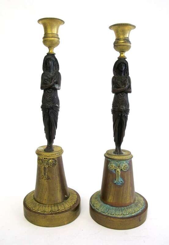 Pair of Charles X Egyptian Revival bronze candlesticks mid 19th century