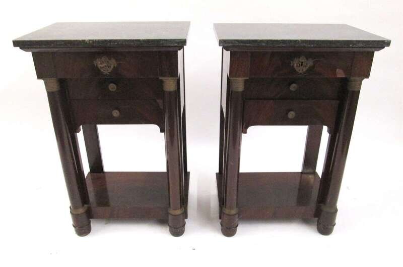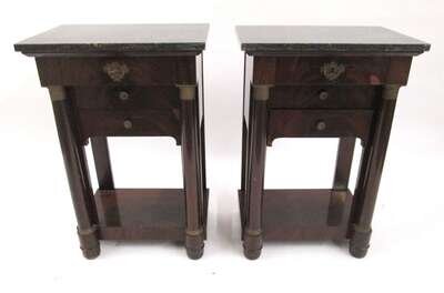Pair of French Empire marble top mahogany tables de nuit 19th century